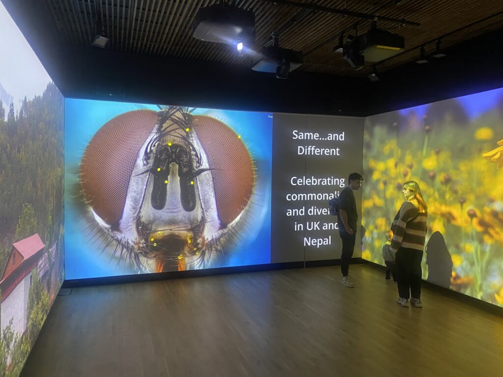 This was a three-screen installation in the South Asian Gallery with macro photos of insects and photojournalism and film of UK and Nepal landscapes as an immersive experience. It was hugely popular with 100s of people coming through on the day.